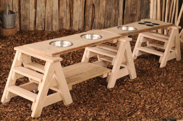 Our modular Activity Stations come in three different combinations designed so you can find the ideal set to create a mud kitchen or play station for your setting. The Create Set is the largest, and the Camp Set is the medium-sized set.