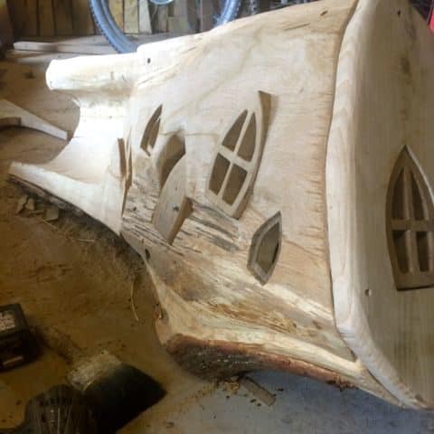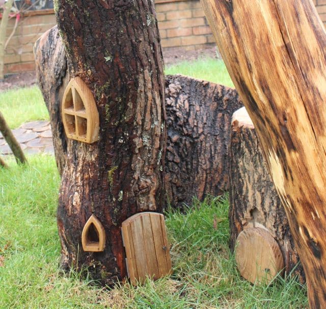 A natural hollow oak log guides the finish of each Fairy House, and facsias, doors and windows are crafted to aid the imagination.